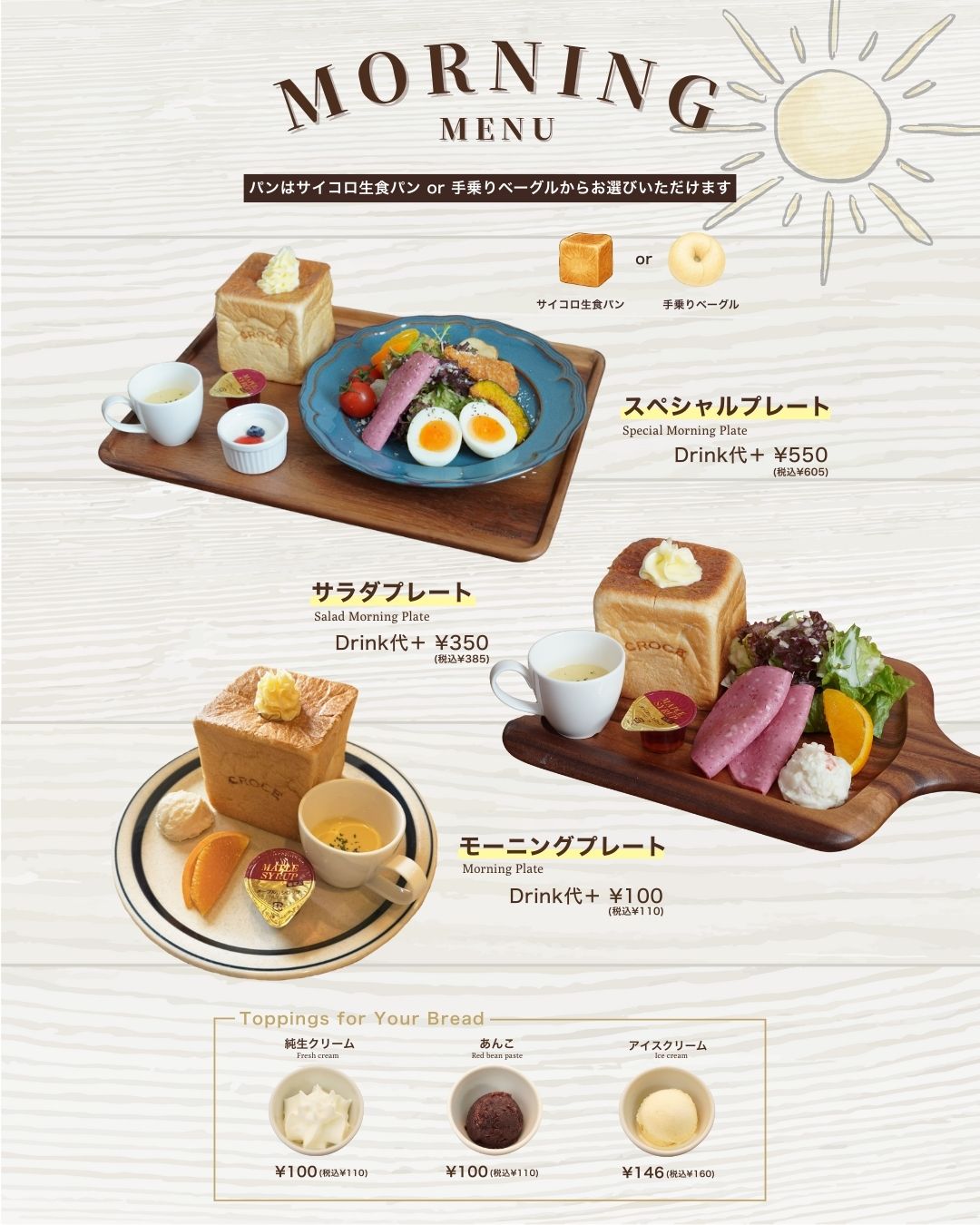 サイコロ食パンのモーニングサービス